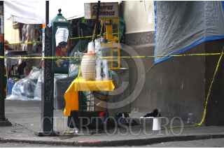 CUERNAVACA, MORELOS, 01AGOSTO2023.- Después de las 16:30 horas un hombre que vende churros rellenos y agua fresca en el Parque San Juan sobrevivió a un ataque a balazos. Los hechos ocurrieron en una de las zonas más céntricas y concurridas de la capital, ya que el sitio también es parada del servicio público de transporte. El comerciante fue atendido por los servicios de emergencia y llevado a un hospital donde se recupera. La zona fue acordonada por policía de Morelos para preservar indicios. Más tarde peritos en criminalística e investigadores de la Fiscalía del Estado llegaron para levantar evidencias para la averiguación que iniciaron. FOTO: MARGARITO PÉREZ RETANA / CUARTOSCURO.COM