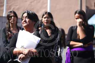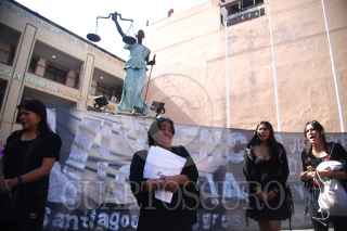 CUERNAVACA, MORELOS, 02AGOSTO2023.- Yolanda González se manifiesta pacíficamente en la explanada del Tribunal Superior de Justicia de Morelos para exigir a las autoridades que hagan su trabajo de manera eficiente. Acompañada de una decena de mujeres que son víctimas de violencia vicaria, denuncio que su hija Dulce Gabriela Flores tenía la custodia de sus hijos Fernando y Santiago, hasta que en el año 2022 fueron a vivir seis meses con su padre a Celaya, Guanajuato, durante ese tiempo solo en tres ocasiones pudo verlos. Después el padre de los niños la denuncio en la oficina de la Fiscalía que tiene en Zacatepec, derivado del proceso el juez Gabriel Cesar Miranda Flores, le dio la guarda y custodia al padre. A Dulce la Fiscalía de Morelos no le quiso levantar la denuncia por sustracción de menores y fue maltratada por los funcionarios que le sugirieron acudir a Celaya a levantar la denuncia. En mayo de este año viajo hasta esa ciudad y se enteró que su hijo Fernando había fallecido, compañeros de clase y maestros dijeron que Fernando ya no acudía a la escuela y que presentaba golpes desde varios meses. El pasado 27 de julio el cuerpo sin vida de Dulce fue localizado en una habitación de hotel en el Estado de México, presentaba huellas de estrangulamiento. Su madre este día responsabilizo al Estado por la muerte de su hija y su nieto al no garantizar la seguridad y no proporcionar justicia. FOTO: MARGARITO PÉREZ RETANA / CUARTOSCURO.COM