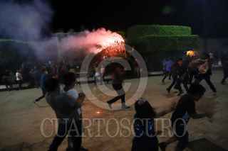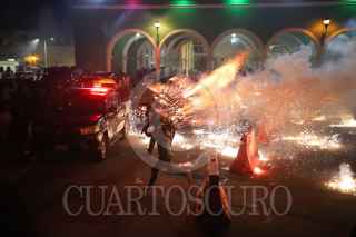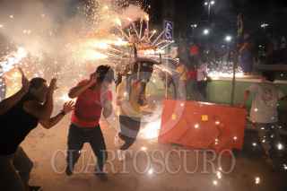 HECELCHAKÁN, CAMPECHE, 02AGOSTO2023.- Con la quema de los Toritos en este poblado culminan los festejos en honor al señor de la salud patrono de la Iglesia de San Francisco de Asís. Esta peculiar tradición se realiza durante el mes de julio y culmina a inicios del mes de Agosto. Como cada año los barrios se reúnen para organizar esta peculiar celebración a la cual acuden decenas de personas a la plaza principal para presenciar la quema de más de una docena de toritos, mientras corren para resguardarse de los cohetes. FOTO: MARTÍN ZETINA/CUARTOSCURO.COM