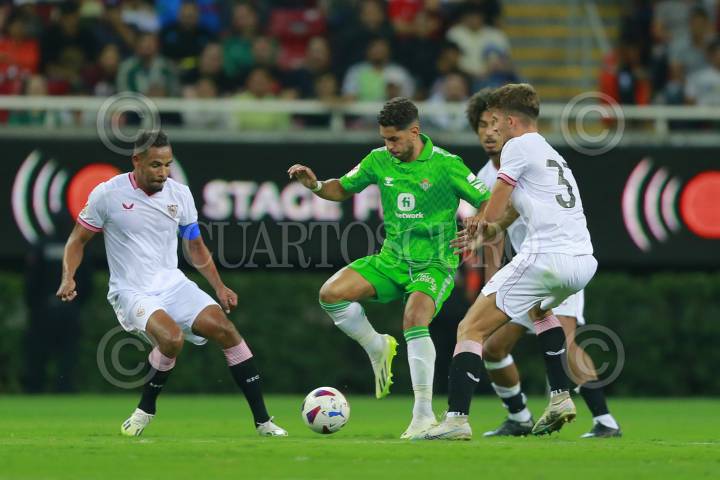 ZAPOPAN, JALISCO 02AGOSTO2023.- Esta noche en el Estadio Akron se lleva a cabo el juego amistoso de pretemporada entre el Club Deportivo Real Betis contra el Club Deportivo Sevilla, esto como parte de “LaLiga Summer Tour 2023”, el marcador al final fue de 1-0 a favor del equipo del Sevilla. FOTO: FERNANDO CARRANZA GARCIA / CUARTOSCURO.COM