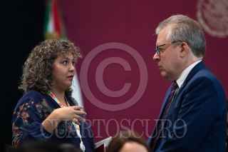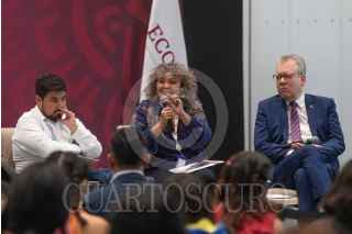 CIUDAD DE MÉXICO, 03AGOSTO2023.- Guillermo Rafael Santiago Rodríguez, director general del Instituto Mexicano de la Juventud; Irais Barreto Canales, titular de la Unidad de Inteligencia Económica Global y Secretaria Ejecutiva del Consejo Nacional de la Agenda 2030, y Peter Grohmann, coordinador residente del Sistema de Naciones Unidas en México, durante del lanzamiento de la convocatoria para la "Red Juvenil por la Agenda 2030", en la Secretaría de Economía. FOTO: MOISÉS PABLO/CUARTOSCURO.COM