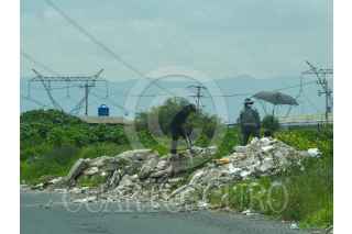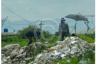 TOLUCA, ESTADO DE MÉXICO, 03AGOSTO2023.- Una familia busca entre los escombros que tiran en terrenos baldíos si algún material puede servirles para vender, pasan algunas horas buscando algo útil. FOTO: CRISANTA ESPINOSA AGUILAR/CUARTOSCURO.COM
