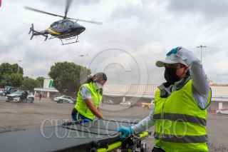CIUDAD DE MÉXICO, 04AGOSTO2023.- Traslado de una jovencita de 15 años en helicoptero ya que sufrió un choque en Xochimilco, fue llevada al hospital de Legaria, en un helicóptero Cóndor dde la SSC, la unidad bajo en el estacionamiento del Soriana ubicado en Tacuba para de ahí llevarla al nosocomio. FOTO: ROGELIO MORALES/CUARTOSCURO.COM