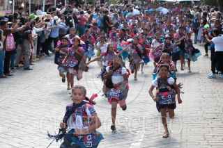 TEHUACÁN, PUEBLA, 06AGOSTO2023.- Abuelas, madres, y nietas participaron de la Carrera de la Tortilla 2023, en la que mujeres de Coapan, Junta Auxiliar del municipio de Tehuacán, corren descalzas cargando varios kilos de tortillas. FOTO: MIREYA NOVO/CUARTOSCURO.COM