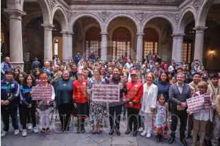 CIUDAD DE MÉXICO, 06AGOSTO2023.- El Jefe de Gobierno, Martí Batres Guadarrama, encabezó la develación del billete de la Lotería Nacional para conmemorar la beca "Bienestar para Niñas y Niños, Mi Beca para Empezar", en el Antiguo Palacio del Ayuntamiento. FOTO: GOBIERNO DE LA CIUDAD DE MÉXICO/CUARTOSCURO.COM