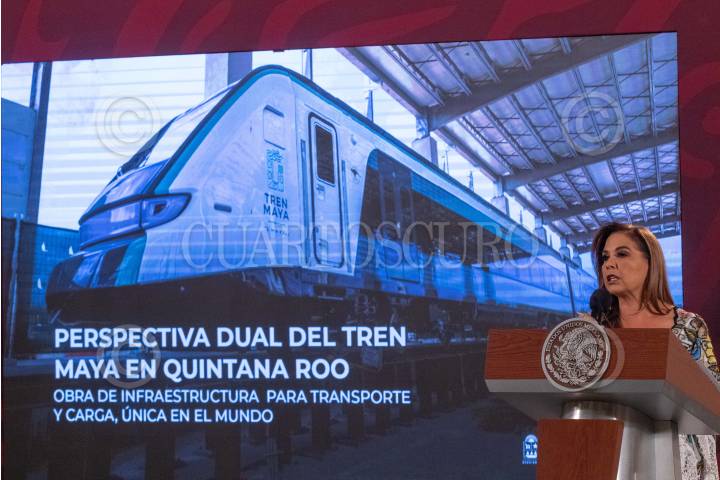CIUDAD DE MÉXICO, 07AGOSTO2023.- Andrés Manuel López Obrador, Presidente de México, encabezó la mañanera en la que se informó de los avances del Tren Maya, Tramos 5, 6 y 7. Lo acompañaron Maria Lezama, Javier May, Diego Prieto, Ricardo Sheffield, entre otros. FOTO: MOISÉS PABLO/CUARTOSCURO.COM