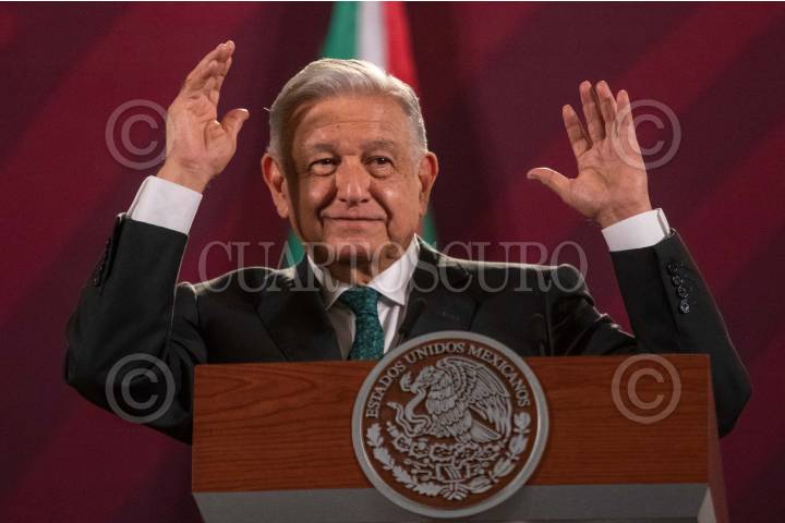 CIUDAD DE MÉXICO, 07AGOSTO2023.- Andrés Manuel López Obrador, Presidente de México, encabezó la mañanera en la que se informó de los avances del Tren Maya, Tramos 5, 6 y 7. Lo acompañaron Maria Lezama, Javier May, Diego Prieto, Ricardo Sheffield, entre otros. FOTO: MOISÉS PABLO/CUARTOSCURO.COM