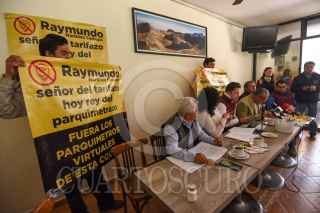 TOLUCA, ESTADO DE MÉXICO, 07AGOSTO2023.- Vecinos de las colonias Universidad, Américas, Francisco Murguía y la Merced, acompañados por los ediles Adán Piña, América Rivera y Mario Cardoso, este último detenido el viernes pasado por policías municipales de Toluca, en conferencia de prensa rechazaron el sistema de parquímetros virtuales que opera en la ciudad desde finales del 2022. Este proyecto de acuerdo a los ediles no pasó por Cabildo, y la información respecto al mismo no es certera y el destino de los recursos es incierto, y continuarán luchando por denunciar diversas irregularidades que existen en este programa y dentro del ayuntamiento. FOTO: CRISANTA ESPINOSA AGUILAR /CUARTOSCURO.COM