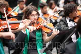 CIUDAD DE MÉXICO, 07AGOSTO2023.- Con la ejecución de notas vibrantes, arcadas precisas, compases a tempo e interpretaciones llenas de emotividad y energía la Orquesta Sinfónica Infantil de México (OSIM) triunfó en el Palacio de Bellas Artes, durante el concierto de cierre de su 31 gira nacional, en el que más de 1,200 personas aplaudieron y se emocionaron al escuchar obras clásicas como Obertura Rienzi, de Richard Wagner; El cazador maldito, de Cesar Franck; Marcha eslava, de Piotr Ilich Tchaikovsky; así como música hecha por mexicanas y mexicanos como Arrecife, de Gina Enríquez; Sinfonía India, de Carlos Chávez; Conga del fuego nuevo, de Arturo Márquez; y Suite 1910, de Manuel Esperón. FOTO: SECRETARÍA DE CULTURA/CUARTOSCURO.COM
