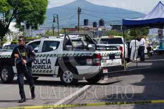 MORELIA, MICHOACÁN, 09agosto2023.- Un comando armado ejecutó a Caleb Rodríguez, jefe de la Tenencia Morelos (encargado del orden), en el sur de Morelia. La Guardia Civil confirmó que el hombre fue asesinado en plena plaza principal de la Tenencia Morelos, uno de los 14 poblados de Morelia con categoría de tenencia, por su gran número de habitantes. Según reportes, el ataque se perpetró la mañana de este miércoles afuera del domicilio del funcionario. FOTO: JUAN JOSÉ ESTRADA SERAFÍN/CUARTOSCURO.COM
