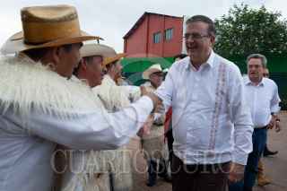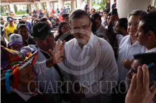 SAN CRISTÓBAL DE LAS CASAS, CHIAPAS, 10AGOSTO2023.- Marcelo Ebrard uno de los posibles candidatos a la presidencia de México por el partido Morena, acompañado de su esposa Rosalinda Bueso y Pio López Obrador (hermano del Presidente de México, Andrés Manuel López Obrador) visitó la ciudad y realizó la presentación del pasaporte Violeta que apoyara a mujeres jefas de familia de todo el país. Reconoció que Chiapas es el segundo estado más pobre de todo el territorio y de ganar la candidatura y presidencia pondría especial atención en erradicar la pobreza y violencia en el estado, siendo de sus prioridades al iniciar su mandato. FOTO: ISABEL MATEOS/CUARTOSCURO.COM