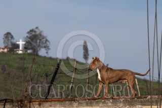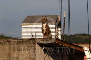 CIUDAD DE MÉXICO, 13AGOSTO2023.- Un perro de la raza Pitbull es confinado en una azotea. Muchos consideran esta raza como peligrosa pero la mayoría de las veces conductas agresivas se deben a que no los socializan con otros caninos, ni con otras personas. FOTO: MOISÉS PABLO/CUARTOSCURO.COM