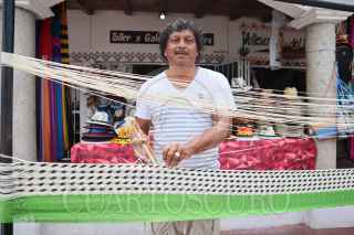 BERRIOZÁBAL, CHIAPAS, 13AGOSTO2023.- Rodrigo Morales, es unos artesanos más importantes de Berriozábal en Chiapas, municipio distinguido por elaboración de sus hamacas. Tiene 40 años tejiendo esté producto con hilos de ceda, su técnica se llama tejido de agua y petatillo. FOTO: DAMIÁN SÁNCHEZ/CUARTOSCURO.COM