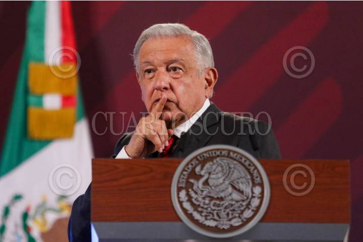 CIUDAD DE MÉXICO, 14AGOSTO2023.- Andrés Manuel López Obrador, Presidente de México, crítico la decisión de un ministro de la SCJN de suspender la distribución de los libros de texto gratuito de la SEP en el estado de Chihuahua, esto debido a una controversia promovida por la gobernadora de aquel estado. Lo acompañaron los gobernadores de Tabasco y Chiapas, Carlos Merino Campos y Rutilio Escandón, respectivamente. FOTO: MOISÉS PABLO/CUARTOSCURO.COM