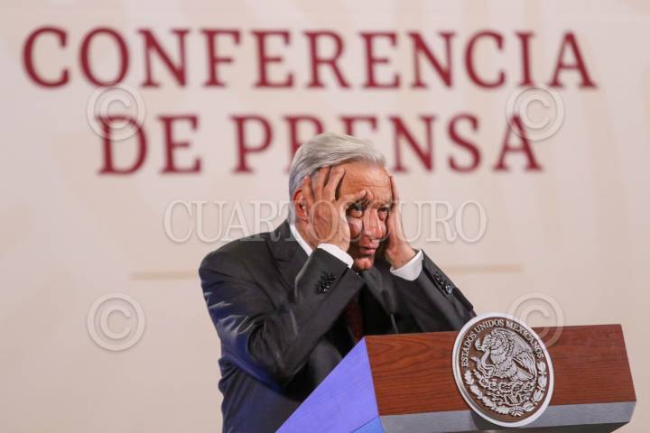 CIUDAD DE MÉXICO, 14AGOSTO2023.- Andrés Manuel López Obrador, Presidente de México, crítico la decisión de un ministro de la SCJN de suspender la distribución de los libros de texto gratuito de la SEP en el estado de Chihuahua, esto debido a una controversia promovida por la gobernadora de aquel estado. Lo acompañaron los gobernadores de Tabasco y Chiapas, Carlos Merino Campos y Rutilio Escandón, respectivamente. FOTO: MOISÉS PABLO/CUARTOSCURO.COM