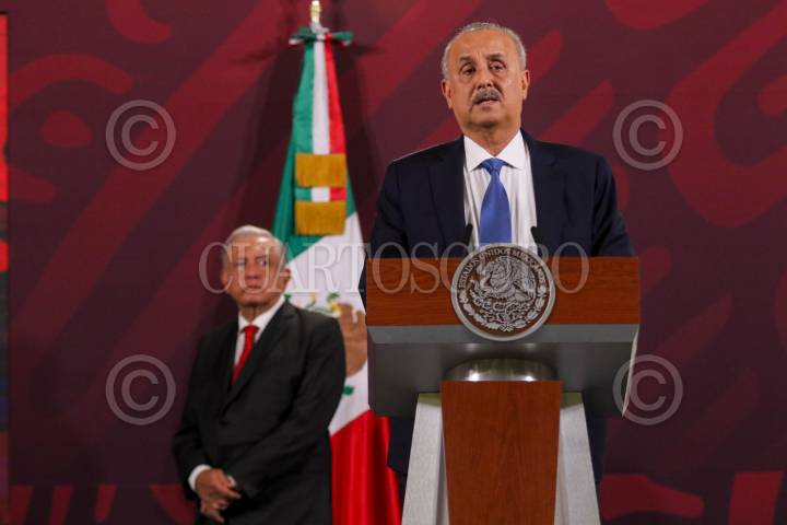 CIUDAD DE MÉXICO, 14AGOSTO2023.- Andrés Manuel López Obrador, Presidente de México, crítico la decisión de un ministro de la SCJN de suspender la distribución de los libros de texto gratuito de la SEP en el estado de Chihuahua, esto debido a una controversia promovida por la gobernadora de aquel estado. Lo acompañaron los gobernadores de Tabasco y Chiapas, Carlos Merino Campos y Rutilio Escandón, respectivamente. FOTO: MOISÉS PABLO/CUARTOSCURO.COM