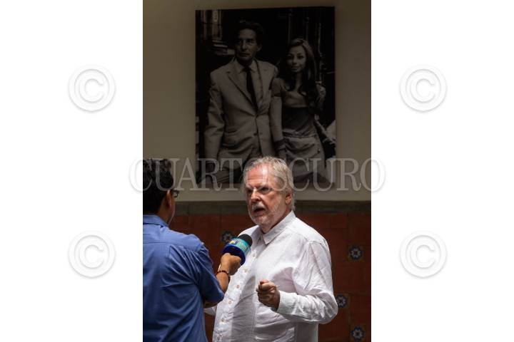 CIUDAD DE MÉXICO, 14AGOSTO2023.- Manuel Morales Iniesta, Rafael Vargas, Anthony Stanton, y Leticia Luna, participaron en un conversatorio "La presencia de Marie José Tramini en la Poesía de Octavio Paz", en el marco del 89 aniversario del natalicio de quien también era conocida Marie-Jo Paz, esto fue en la casa que compartieran ambos en vida, en la colonia Tacuba. FOTO: MOISÉS PABLO/CUARTOSCURO.COM