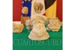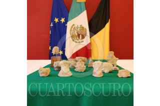 CIUDAD DE MÉXICO, 14AGOSTO2023.- El embajador de México en Bélgica, Rogelio Granguillhome Morfín, recibió el día de hoy, 14 de agosto de 2023, 20 piezas arqueológicas tras ser dictaminadas por especialistas del Instituto Nacional de Antropología e Historia (INAH) como patrimonio cultural de nuestra nación. Los objetos proceden de culturas originarias del Altiplano Central y fueron elaboradas durante el periodo Clásico mesoamericano (100-650 d.C.). Las piezas fueron entregadas por Louise Du Moulin Maria, ciudadana belga quien señaló que su familia tuvo posesión de estos bienes durante más de siete décadas; sin embargo, gracias a la campaña #MiPatrimonioNoSeVende, tomo conciencia de que tales objetos “pertenecen a México”, por lo que decidió restituirlas. FOTO: SRE/CUARTOSCURO.COM