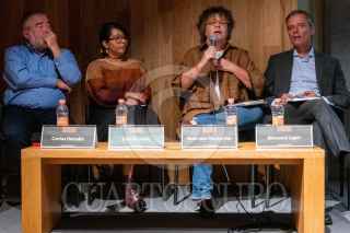 CIUDAD DE MÉXICO, 15AGOSTO2023.- Carlos Heredia, economista y columnista; Leni Álvarez, integrante de la organización Otros Dreams en Acción; Gabriela Warkentin, periodista y productora mexicana, y Giovanni Lepri, Representante del Alto Comisionado de las Naciones Unidas para los Refugiados (ACNUR) en México, encabezaron la conferencia y reflexión sobre el estudio desarrollado por Oxfam México “El muro mexicano. Estudio de percepciones sobre la migración en México”. FOTO: GALO CAÑAS/CUARTOSCURO.COM