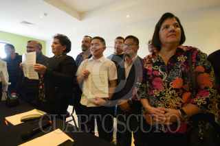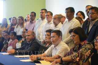 XALAPA, VERACRUZ, 15AGOSTO2023.- Cerca de 80 alcaldes y alcaldesas de Veracruz del PRI, Morena y Partido Verde emitieron un pronunciamiento en relación con los criterios que han tomado jueces y magistrados federales, determinando cesar la prisión preventiva oficiosa y que han permitido dejar en libertad a probables responsables de delitos graves. El alcalde de Chontla, Néstor Enrique Sosa Peña se sumó al llamado a las y los jueces para que reconsideren esta tesis que han planteado con 45 presuntos delincuentes y 3 mil 356 que pudieran estar en los próximos meses en las calles. FOTO: YERANIA ROLÓN/CUARTOSCURO.COM