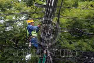 CIUDAD DE MÉXICO, 15AGOSO2023.- Trabajador instala cableado en un poste para conectar televisión de paga en la zona de Polanco. FOTO: MOISÉS PABLO/CUARTOSCURO.COM