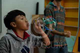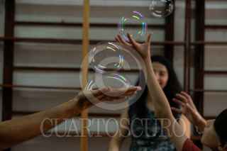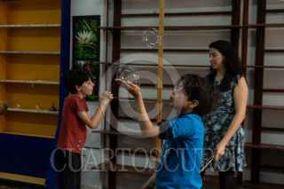 SAN CRISTÓBAL DE LAS CASAS, CHIAPAS, 15AGOSTO2023.- La Enseñanza Casa de la Ciudad ubicada en el corazón de la ciudad, organiza diferentes talleres dirigidos a la niñez este verano. La compañía de teatro Tampoco Tan Poco a cargo de Matías Zeta concluye esta última semana de vacaciones un taller dedicado al aprendizaje de las burbujas de jabón, malabares y teatro mudo, donde niños y niñas exploran estas actividades antes de iniciar este nuevo ciclo escolar. FOTO: ISABEL MATEOS /CUARTOSCURO.COM