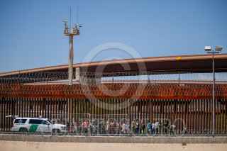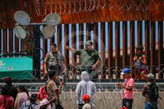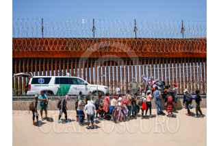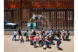 CIUDAD JUÁREZ, CHIHUAHUA, 15AGOSTO2023.- Un grupo de migrantes de diversas nacionalidades cruza la frontera entre México y EU,para entregarse a las autoridades migratorias en busca de asilo. FOTO: JUAN ORTEGA SOLÍS/CUARTOSCURO.COM