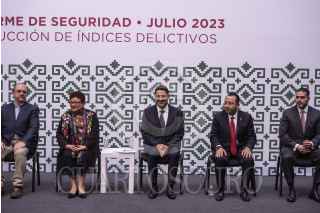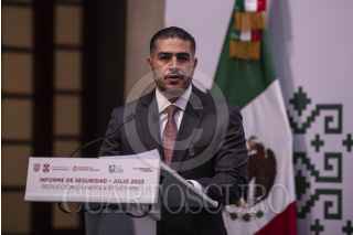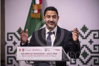 CIUDAD DE MÉXICO, 16AGOSTO2023.- Martí Batres, Jefe de Gobierno de la ciudad de México, encabezó una conferencia en el Antiguo Palacio de Ayuntamiento, en donde se expusieron los pormenores y estadísticas en materia de seguridad de su gobierno, así como de aquel que lo precedió. Estuvieron presentes también Omar García Harfuch, Secretario de Seguridad Ciudadana, Eduardo Clark García, director General del Gobierno Digital de la Agencia Digital de Innovación Pública, entre otros. FOTO: PEDRO ANZA /CUARTOSCURO.COM