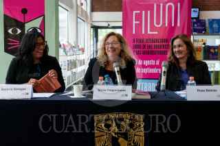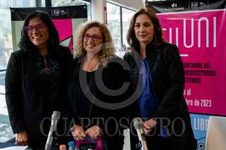CIUDAD DE MÉXICO, 16AGOSTO2023.- Socorro Venegas, escritora y directora de la La Feria Internacional del Libro de las Universitarias y los Universitarios (FILUNI); Sonia Feigenbaum, vicerrectora de la Universidad de Texas, y Rosa Beltrán, escritora y coordinadora de Difusión Cultural de la UNAM, encabezaron la conferencia de prensa para anunciar la edición 2023 de la FILUNI (29 de agosto - 03 de septiembre 2023). FOTO: GALO CAÑAS/CUARTOSCURO.COM