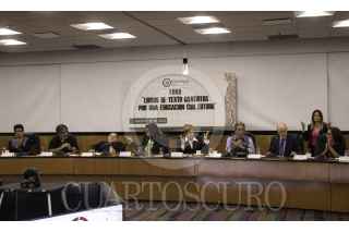 CIUDAD DE MÉXICO, 16AGOSTO2023.- Irma Villapando Hernández, Profesora FES Acatlán; David Black Sevilla, departamento de Investigaciones Educativas del Cinvestav y Eduardo Backhoff, de métrica Educativa fueron los ponentes para el primer día de dos del Foro: Libros de Texto gratuitos para una educación con futuro que se lleva a cabo en la cámara de diputados. FOTO: ANDREA MURCIA /CUARTOSCURO.COM