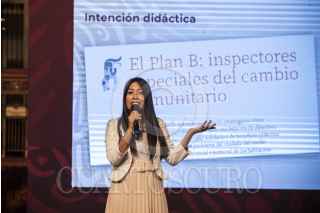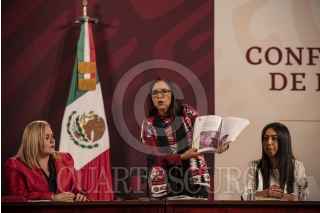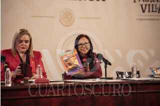 CIUDAD DE MÉXICO, 16AGOSTO2023.- Conferencia de prensa en donde se presentaron algunas de las secciones y contenido de los nuevos libros de texto de la Secretaría de Educación Pública. En la conferencia estuvieron presentes Leticia Ramírez Amaya, secretaria de Educación Pública, Ana María Prieto Hernández, maestra normalista de Educación Primaria, Adriana Yolanda Domínguez Cornejo, docente formadora de maestras y maestros de la Escuela Normal de Educación Física del Estado de México, y las docentes Isabel Camargo Cesáreo e Irma Vázquez Guerrero. FOTO: PEDRO ANZA /CUARTOSCURO.COM