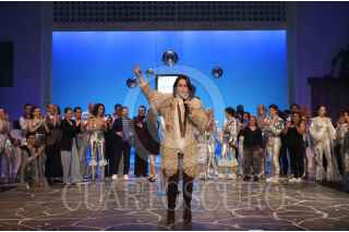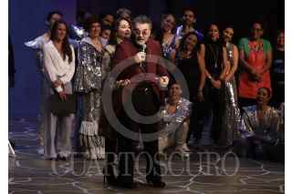 CIUDAD DE MÉXICO, 17AGOSTO2023.- Develación de placa por las 100 representaciones del musical Mamma Mia! en el Teatro de Los Insurgentes, a la cual asistieron como padrinos de honor los cantantes Daniela Romo y Manuel Mijares. FOTO: EDGAR NEGRETE LIRA/CUARTOSCURO.COM