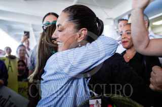 CHIHUAHUA, CHIHUAHUA, 18AGOSTO2023.- Claudia Sheinbaum, aspirante a encabezar la candidatura por Morena en 2024, arribó al aeropuerto internacional de Chihuahua para encabezar actividades en el estado. FOTO: ESPECIAL/CUARTOSCURO.COM
