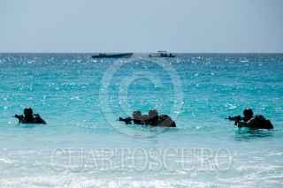CANCÚN, QUINTANA ROO. 18AGOSTO2023.- Demostración de Ejercicios Navales de la Secretaría de Marina en Playa Forum, #testigos de todas partes presenciaron asombrados la imponente exhibición de destreza y poderío. Los ejercicios realizados dejaron a todos maravillados con la coordinación y habilidades de nuestras fuerzas armadas. La demostración destacó la dedicación y el profesionalismo de la Armada de México. FOTO: ELIZABETH RUIZ/CUARTOSCURO.COM