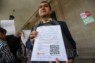 TOLUCA, ESTADO DE MÉXICO, 18AGOSTO2023.- Isaac Alonso Garduño enlace de Actívate Estado de México acompañado por integrantes de diversas asociaciones civiles entregaron al Gobierno del Estado de México más de 45 mil firmas en rechazo a la repartición de los nuevos Libros de Texto Gratuito y tampoco se utilice el plan de estudios de la Nueva Escuela Mexicana. FOTO: CRISANTA ESPINOSA AGUILAR /CUARTOSCURO.COM