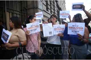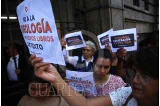 CUERNAVACA, MORELOS, 18AGOSTO2023.- Encabezados por Rogelio Varela, integrante de la Unión Nacional de Padres de Familia, una decena de católicos protestaron en la puerta del Palacio de Gobierno de Morelos, por la distribución de los nuevos libros de texto. Con pequeñas pancartas expresaron "No a la ideología en los nuevos libros de texto" y exigieron " Una educación de calidad". Los manifestantes entregaron un documento a las autoridades correspondientes. FOTO: MARGARITO PÉREZ RETANA / CUARTOSCURO.COM