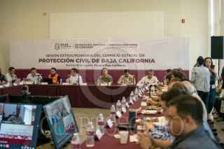 TIJUANA, BAJA CALIFORNIA, 18AGOSTO2023.- Autoridades del Gabinete de Gobierno de Baja California se reunieron en una sesión extraordinaria del Consejo Estatal de Protección Civil con propósito, abordar temas en materia de seguridad y prevención ante los posibles daños que podría causar el paso del Huracán Hilary en la región. La reunión se realizó en las instalaciones del Ceart y contó con autoridades de los tres ordenes de gobierno. FOTO: CUARTOSCURO.COM