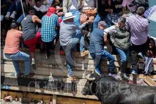 HUAMANTLA, TOAXCALA,19AGOSTO2023. Se realizó la Huamantlada 2023, en su edición 69, en las principales calles de la ciudad de Huamantla. A partir de las 10:30 am y con el aviso de tres cohetones, los asistentes soltaron 22 toros por las calles del pueblo mágico. FOTO: ESSENE HERNÁNDEZ /CUARTOSCURO.COM
