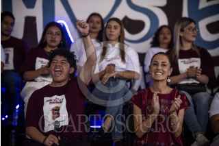 TOLUCA, ESTADO DE MÉXICO, 19AGOSTO2023.- Claudia Sheinbaum, aspirante a coordinadora nacional de los comités de defensa de la Cuarta Transformación, visitó la ciudad de Toluca, en donde sostuvo un encuentro con estudiantes de distintos estados del país. FOTO: PEDRO ANZA /CUARTOSCURO.COM
