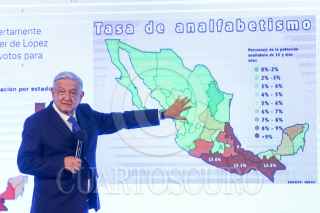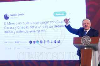 CIUDAD DE MÉXICO, 21AGOSTO2023.- Andrés Manuel López Obrador, Presidente de México, encabezó la mañanera en Palacio Nacional. El mandatario hablo sobre los dichos de Gabriel Quadri, Francisco Martín Moreno, Xóchitl Gálvez y Vicente Fox, a quienes señaló de denostar a los estados del sur cómo Oaxaca, Guerrero y Chiapas y a la gente de escasos recursos. También hablo de la quema de libros de texto gratuito del día de ayer en Chiapas. FOTO: MOISÉS PABLO/CUARTOSCURO.COM