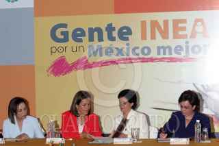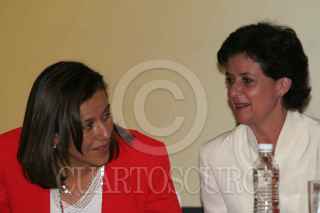 MÉXICO, D.F., 04MAYO2007.- Margarita Zavala Gómez del Campo, esposa del primer mandatario y Cecilia Landerreche Gómez Morín, directora del DIF, durante la firma de convenio entre la INEA y el DIF para impulsar un programa educativo para personas adultas con capacidades diferentes en la sede del DIF. FOTO: MOISÉS PABLO/CUARTOSCURO.COM