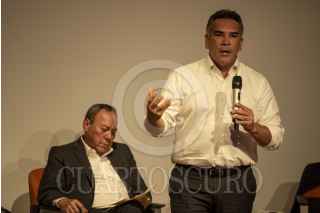 HUIXQUILUCAN, ESTADO DE MÉXICO, 21AGOSTO2023.- Jesús Zambrano, Alejandro Moreno Cárdenas, y Marko Cortés, asistieron a la Universidad Anáhuac en donde compartieron con estudiantes sobre las propuestas de la Alianza Va x México. FOTO: PEDRO ANZA /CUARTOSCURO.COM