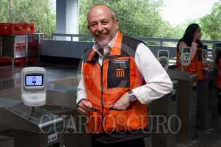CIUDAD DE MÉXICO, 22AGOSTO2023.- El director general del STC Metro, Guillermo Calderón Aguilera; y el secretario de Movilidad, Andrés Lajous Loaeza, encabezaron la conferencia de Prensa, "Modernización del sistema de peaje en el Metro", esto en la estación del Metro, El Rosario de la Línea 6 en la Alcaldía Azcapotzalco. FOTO: ROGELIO MORALES /CUARTOSCURO.COM