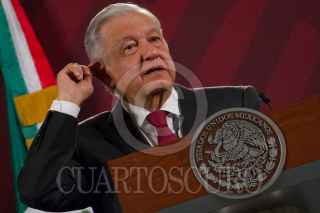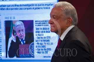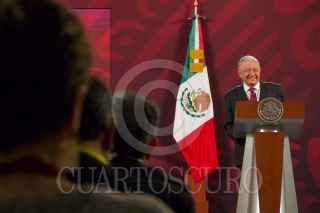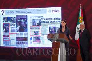 CIUDAD DE MÉXICO, 23AGOSTO2023.- Andrés Manuel López Obrador, presidente de México y Ana Elizabeth García Vilchis, durante la conferencia matutina, donde se abordó el tema de quién es quién en las mentiras, desde el Salón Tesorería de Palacio Nacional. FOTO: ROGELIO MORALES /CUARTOSCURO.COM
