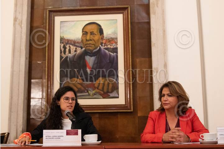 CIUDAD DE MÉXICO, 23AGOSTO2023.- Luis Rodríguez Bucio, subsecretario de Seguridad Pública; Nadine Gasman, presidenta del Instituto Nacional de las Mujeres; Luisa María Alcalde Luján, secretaria de Gobernación, y Fabiola Alanís Sámano, Comisionada Nacional para Prevenir y Erradicar la Violencia contra la Mujeres, durante la presentación mensual del grupo interinstitucional de la estrategia nacional de protección para las mujeres, niñas, niños, adolescentes y adultas mayores que viven violencias basadas en el género. FOTO: MOISÉS PABLO/CUARTOSCURO.COM