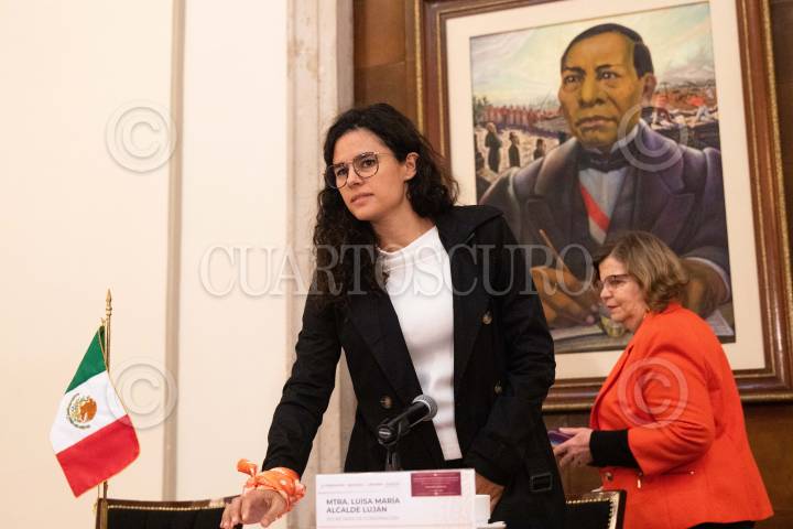 CIUDAD DE MÉXICO, 23AGOSTO2023.- Luis Rodríguez Bucio, subsecretario de Seguridad Pública; Nadine Gasman, presidenta del Instituto Nacional de las Mujeres; Luisa María Alcalde Luján, secretaria de Gobernación, y Fabiola Alanís Sámano, Comisionada Nacional para Prevenir y Erradicar la Violencia contra la Mujeres, durante la presentación mensual del grupo interinstitucional de la estrategia nacional de protección para las mujeres, niñas, niños, adolescentes y adultas mayores que viven violencias basadas en el género. FOTO: MOISÉS PABLO/CUARTOSCURO.COM