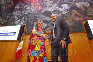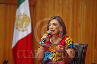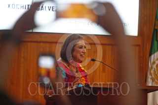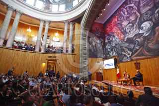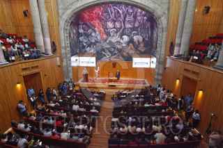 GUADALAJARA, JALISCO, 23AGOSTO2023.- Esta mañana en las instalaciones del Paraninfo Enrique Díaz de León de la U. de G., la senadora por el Partido Acción Nacional (PAN), Xóchitl Gálvez Ruiz, sostuvo un encuentro con la comunidad universitaria denominado “Derecho de Replica”, en el cual estuvo presente el Rector de la Universidad de Guadalajara, Ricardo Villanueva, entre otras personalidades universitarias y políticas. FOTO: FERNANDO CARRANZA GARCIA / CUARTOSCURO.COM