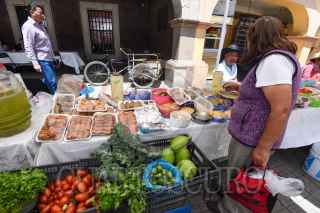 SAN MATEO ATENCO, ESTADO DE MÉXICO, 23AGOSTO2023.- Todos los miércoles se instala el Tianguis Agropecuario “Del Campo a tu Casa” frente a la presidencia municipal de San Mateo Atenco, en donde más de 25 familias y mujeres de este municipio ofertan productos del campo cultivadas por ellos, alimentos, pan, licores entre otros, han sido capacitadas por la Dirección de Salud y COPRISEM sobre el manejo adecuado de alimentos, así como en temas de emprendurismo y administración, y a través de redes sociales comparten recetas tradicionales, sanas y económicas con el nombre de “Sazón Atequense”. FOTO: CRISANTA ESPINOSA AGUILAR /CUARTOSCURO.COM