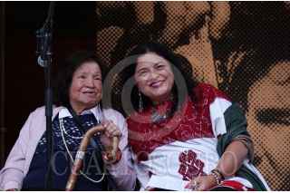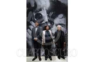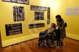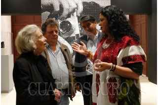 CIUDAD DE MÉXICO, 23AGOSTO2023.- La fotógrafa María García, viuda del fotógrafo Héctor García; Alejandra Frausto, secretaria de Cultura; la escritora Elena Poniatowska; Héctor García García, hijo del fotógrafo Héctor García; Leticia Ramírez, secretaria de Educación Pública; inauguraron la exposición "El lado oscuro del régimen: la protesta del 58 y el 68", con la curaduría de Alberto del Castillo en el Centro Cultural Los Pinos. Esta muestra expone la manera en que Héctor García cubrió dos momentos clave de la protesta social de mediados de siglo pasado, representados por el levantamiento de ferrocarrileros, telegrafistas, estudiantes y maestros de finales de la década de los cincuenta y la gran revuelta estudiantil de 1968. FOTO: GRACIELA LÓPEZ /CUARTOSCURO.COM