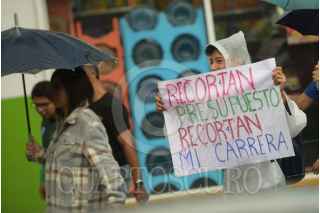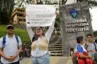 XALAPA, VERACRUZ, 24AGOSTO202.- Estudiantes de la Universidad Veracruzana marcharon bajo la lluvia en Xalapa en protesta por los recortes de las becas CONAHCYT. FOTO: YERANIA ROLÓN/CUARTOSCURO.COM